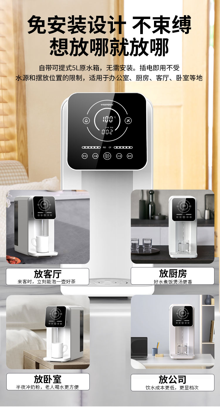 在净化功能上,日韩福利午夜视频富氢水机全部采用RO膜反渗透净化原理,它能够对水中的泥沙、铁锈、重金属等有害物质进行过滤,确保水的干净之后,再通过高浓缩富氢溶解技术进行溶氢,能够达到直接饮用的标准。此外,威世尔顿的台式免安装设计,避免了打孔安装的麻烦,同时提高了产品使用率,能够适用于客厅、卧室、书房、厨房等场地,不受固定安装的束缚。