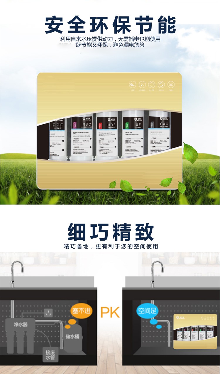 4、适合南方无水垢家庭,3-5口之家,解决厨房用水与饮水问题;